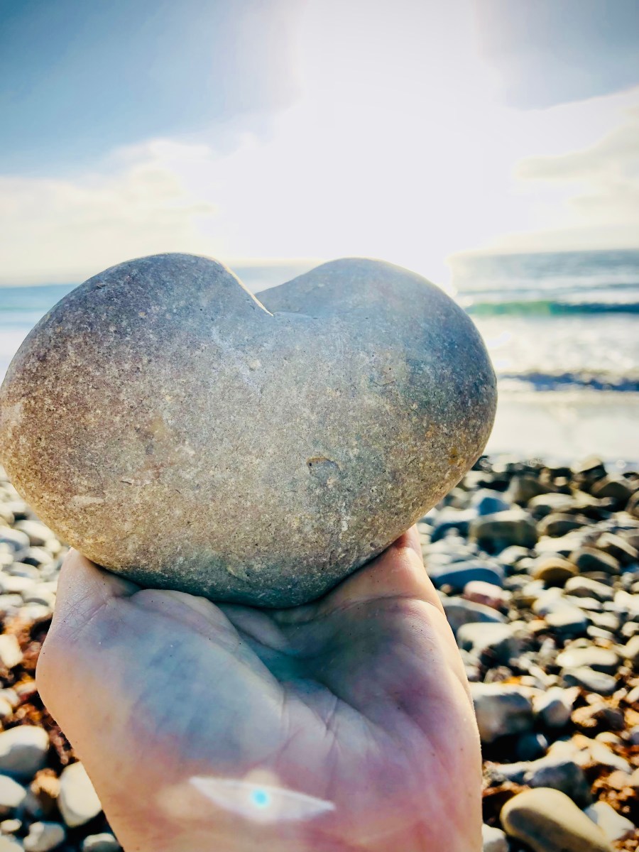 and stumbling along the seashore she found in the round curves of a rock her heart Ah-ha! she exclaimed Here is the perfect gift to give my love This heartrock warm in the sun is my heart my heart of eternal love May the seasons spin round and round and around and may the storms wail and rage and rage until they turn themselves skyblue Meanwhile my heart remains here unchanged on this seashore—on this woven red strand by dusk and by dawn dancing all the sparkles the light and the shadows into one into one timeless one timeless and divine love