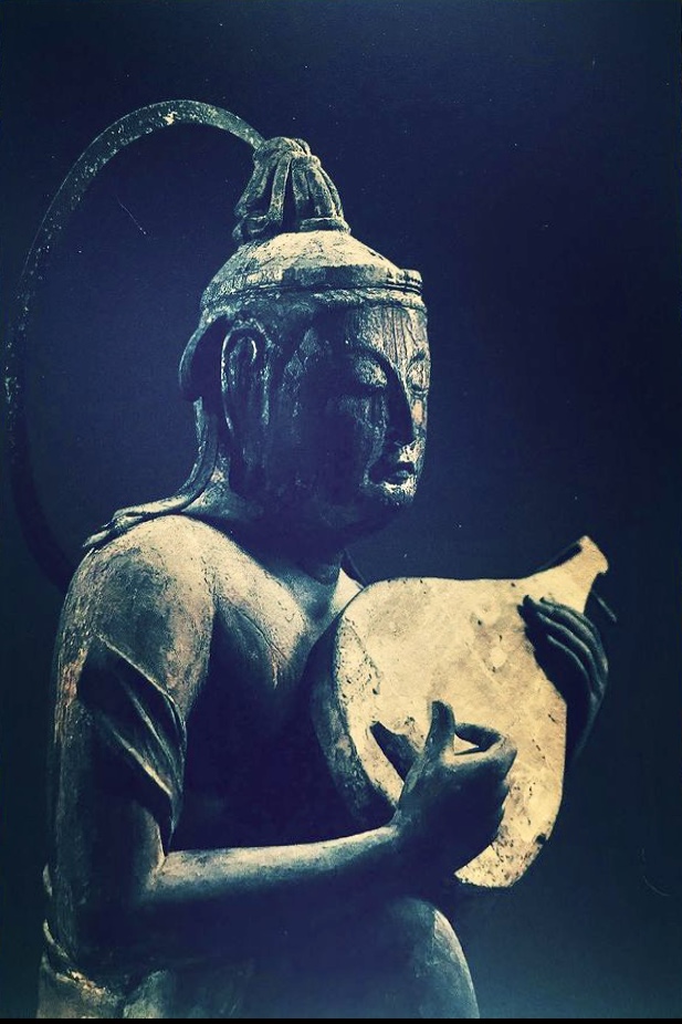 Not long before that night I had visited Byodoin Temple, a UNESCO world heritage site in Uji, Kyoto. In the Phoenix Hall of Byodoin is a collection of 52 wooden bodhisattva statues, of which the one in the above photograph is my favorite. It’s playing the biwa, a traditional Japanese lute. With its serene composure, this lute-playing bodhisattva looks to me like a moon-deity playing heavenly music to the troubled and tired human souls on earth. And so I later imagined myself cycling along the river, together with moon sparkles and a benevolent bodhisattva, singing a lullaby to the tired shadows of night.